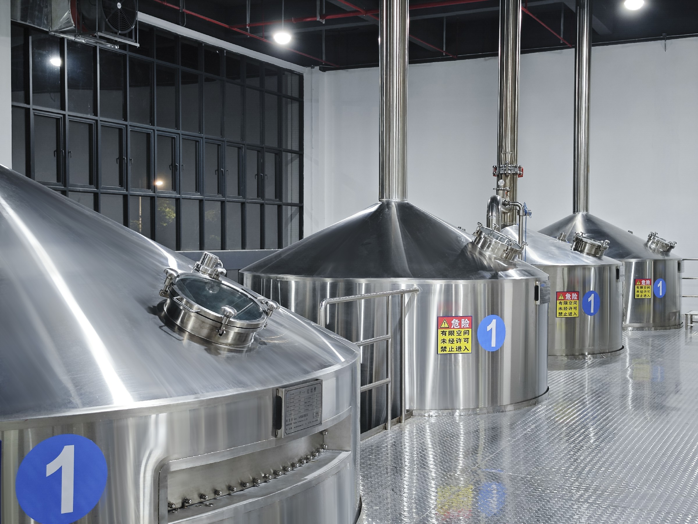 啤酒糖化系統(tǒng)主要由糊化鍋、糖化鍋、過濾槽、煮沸鍋、旋沉槽組成??筛鶕?jù)需要設計不同的組合。對于精釀啤酒廠生產(chǎn)線的糖化部分,通常配置三器、四器、五器等多種組合方式。罐體全部采用衛(wèi)生級不銹鋼304 /316L制成,或紫銅外包,并采用TIG焊接。罐體內(nèi)膽整體酸洗鈍化,拋光精度達0.4um。并采用TIG焊接。罐體內(nèi)膽整體酸洗鈍化,拋光精度達0.4um。